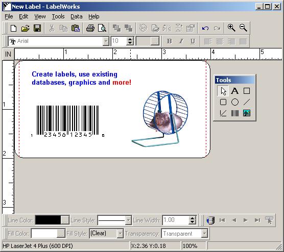 application for creating labels and bar codes. Graphics can be imported in